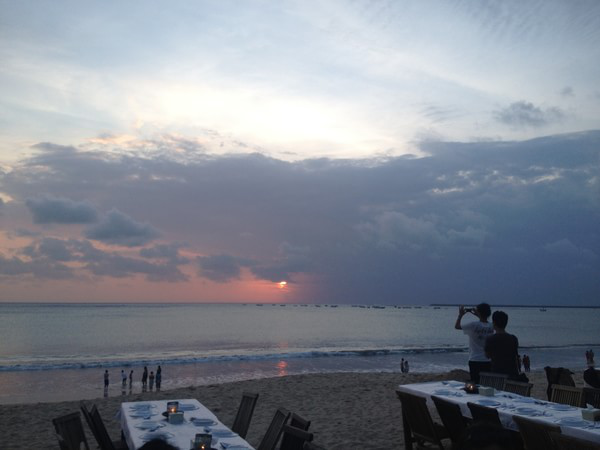 金巴蘭的沙灘沙子也舒服,踩在上面軟軟的~~~~吃飯的地方慢慢從亮變暗,還可以脫了鞋子,把腳踩在沙灘里,享受不一樣的晚餐。