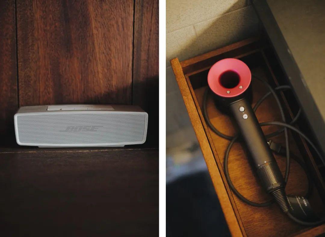備品也都是品質(zhì)之選:雅蘭床墊、Boss音響、戴森吹風(fēng)機(jī)……