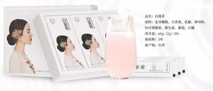 白蔓蒂配料為麥芽糊精、百香果、乳糖、磷脂、酵母粉、血橙、針葉櫻桃果、二氧化硅、維生素C、葡萄、石榴。“白蔓蒂”美白粉,是由意大利血橙、葡萄、專(zhuān)利番石榴、西印度櫻桃等純鮮果物萃取精華,用天然的方法,將層中殘留的有害物質(zhì)清除干凈。