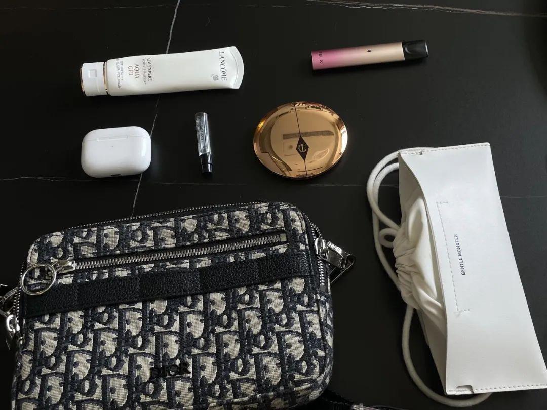 作為一個(gè)廣告行業(yè)從業(yè)者,必須隨時(shí)準(zhǔn)備工作,一般上班都背著可以裝電腦的大包,出去玩的時(shí)候就怎么簡(jiǎn)單怎么來。日常出門我用Dior相機(jī)包,因?yàn)榛径紩?huì)帶妝,所以包包里東西會(huì)零碎一點(diǎn)。上班的話因?yàn)橐獢y帶電腦,所以是比較能裝的MUJI“十八塊”亞麻手提袋。