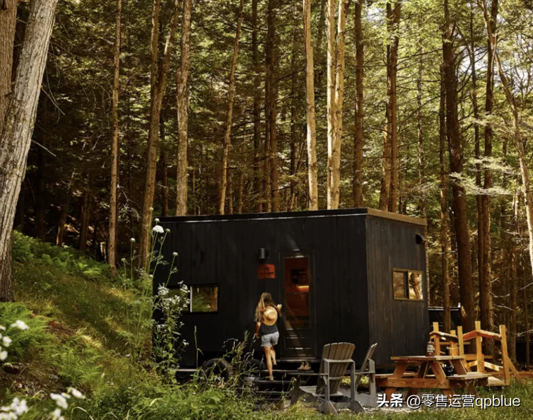 該店型大多選址于距離主要城區(qū)大約1-2小時(shí)車程的森林中,是沃爾瑪與一家初創(chuàng)公司 Getaway 合作,由該公司負(fù)責(zé)提供類似于房車的極簡(jiǎn)風(fēng)格的小木屋,沃爾瑪則提供登山裝備炊具、餐具、防曬霜、雨衣等戶外露營(yíng)需要的物品。