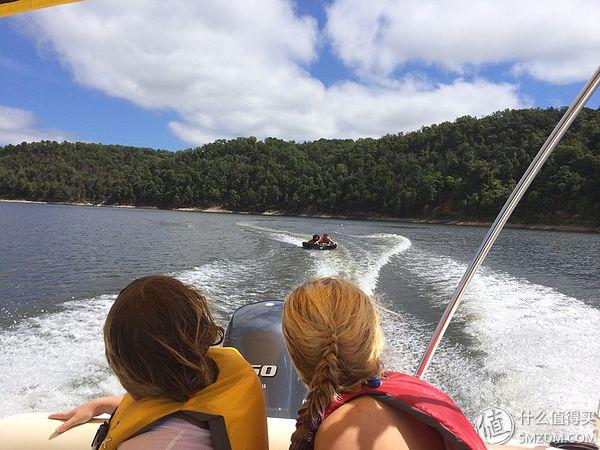 去年實(shí)驗(yàn)室組織玩水。這個(gè)叫tubing,前面小艇拽著個(gè)氣墊子在湖面上奔馳,制造出各種波浪,終把氣墊子及上面的人掀到水里。前面兩個(gè)金發(fā)蘿莉是老板秘書家的,墊子上的糙哥是作者,左面女孩是巴拿馬來的本科生。挺刺激的活動(dòng),但是摔到水里真是疼啊。