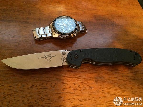 從國(guó)內(nèi)帶的三刃木丟了,根據(jù)各種評(píng)測(cè)買了一把折刀,亞馬遜五星好評(píng),材質(zhì)很好,刀很鋒利,就是太大了。掛在褲兜里,感覺褲子都被它拽掉了。