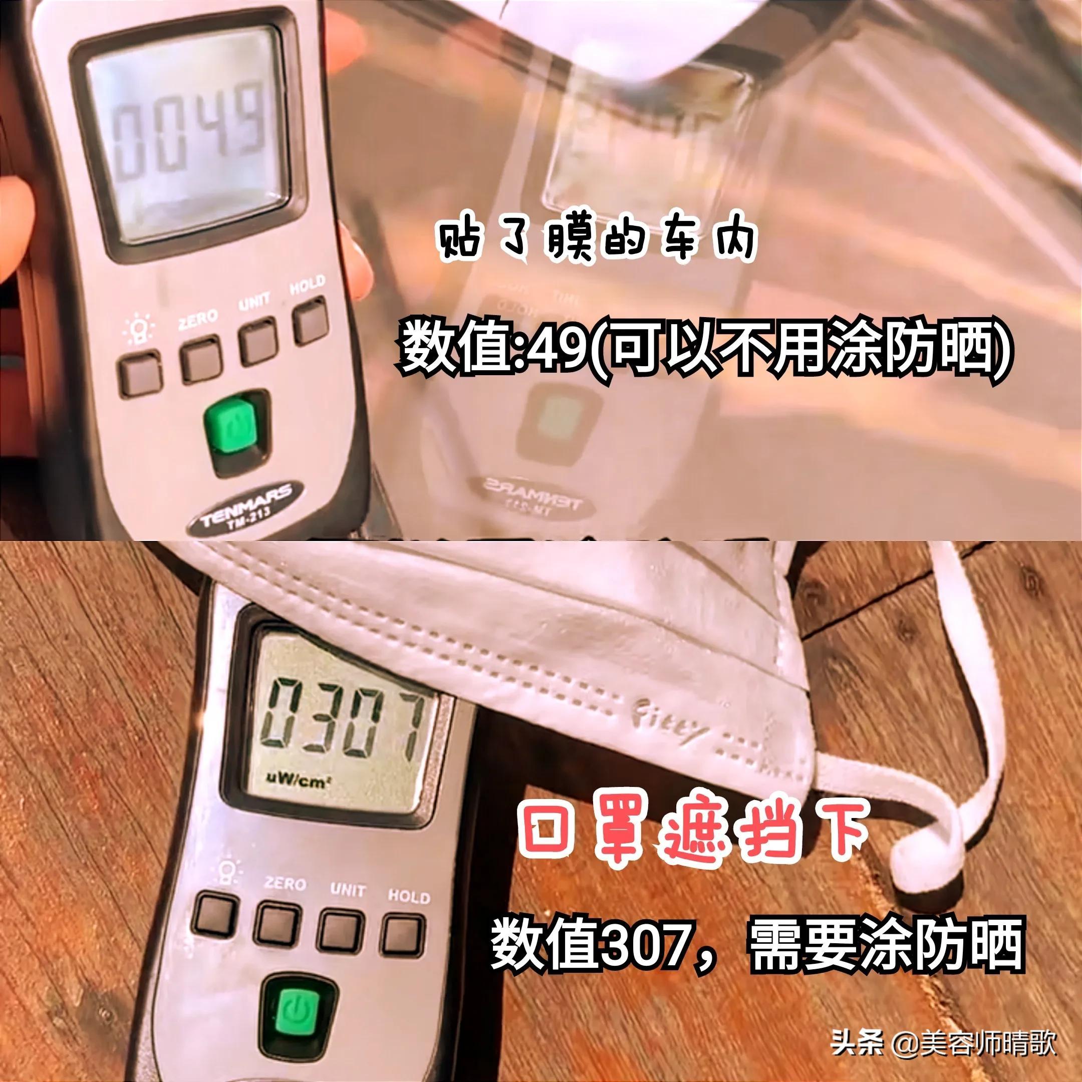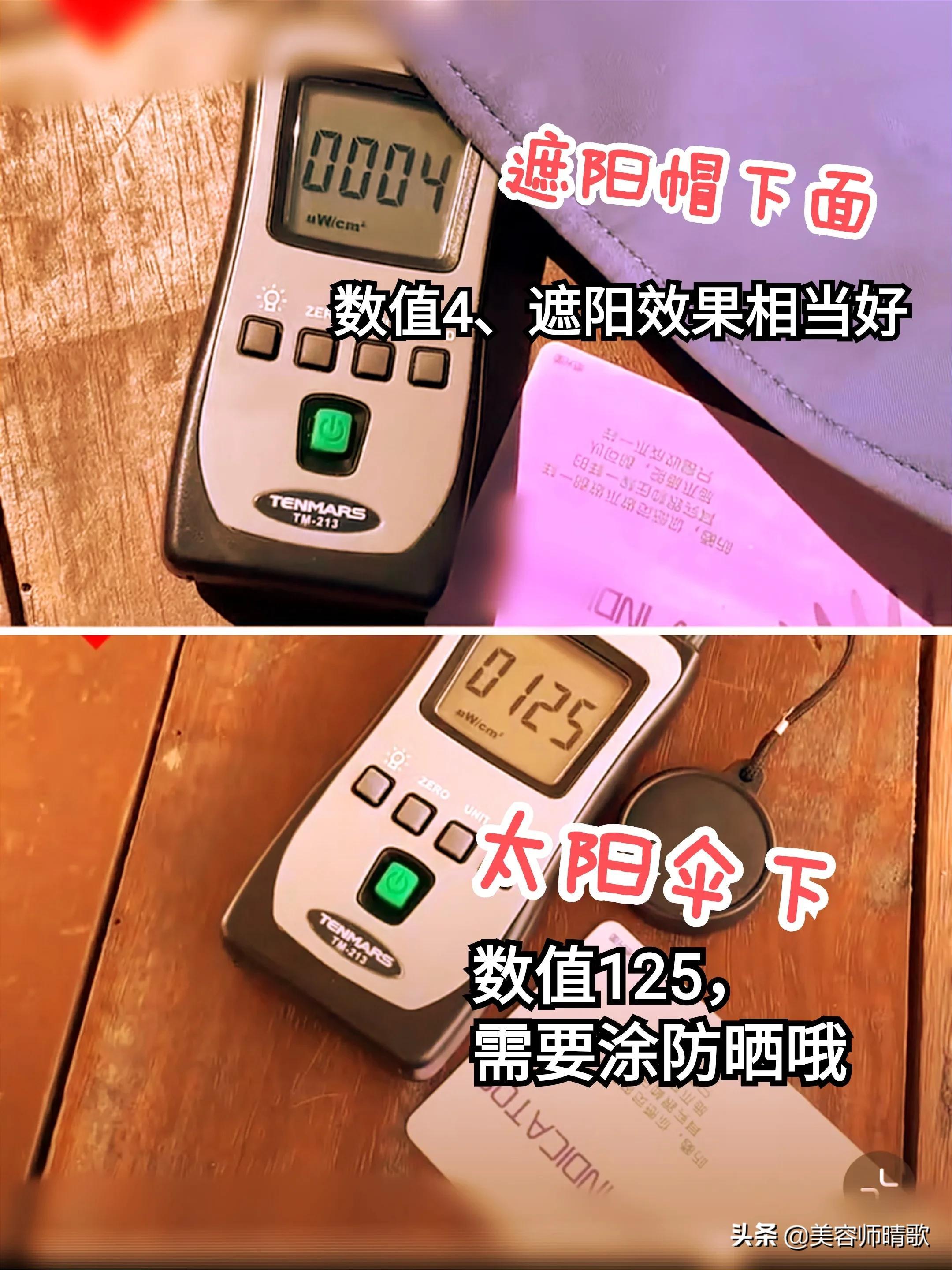 這組人工測(cè)量的數(shù)字,雖然有偏差,但也依舊能反應(yīng)出一個(gè)結(jié)論: 口罩、遮陽帽、太陽傘等硬防曬果,大于防曬霜!