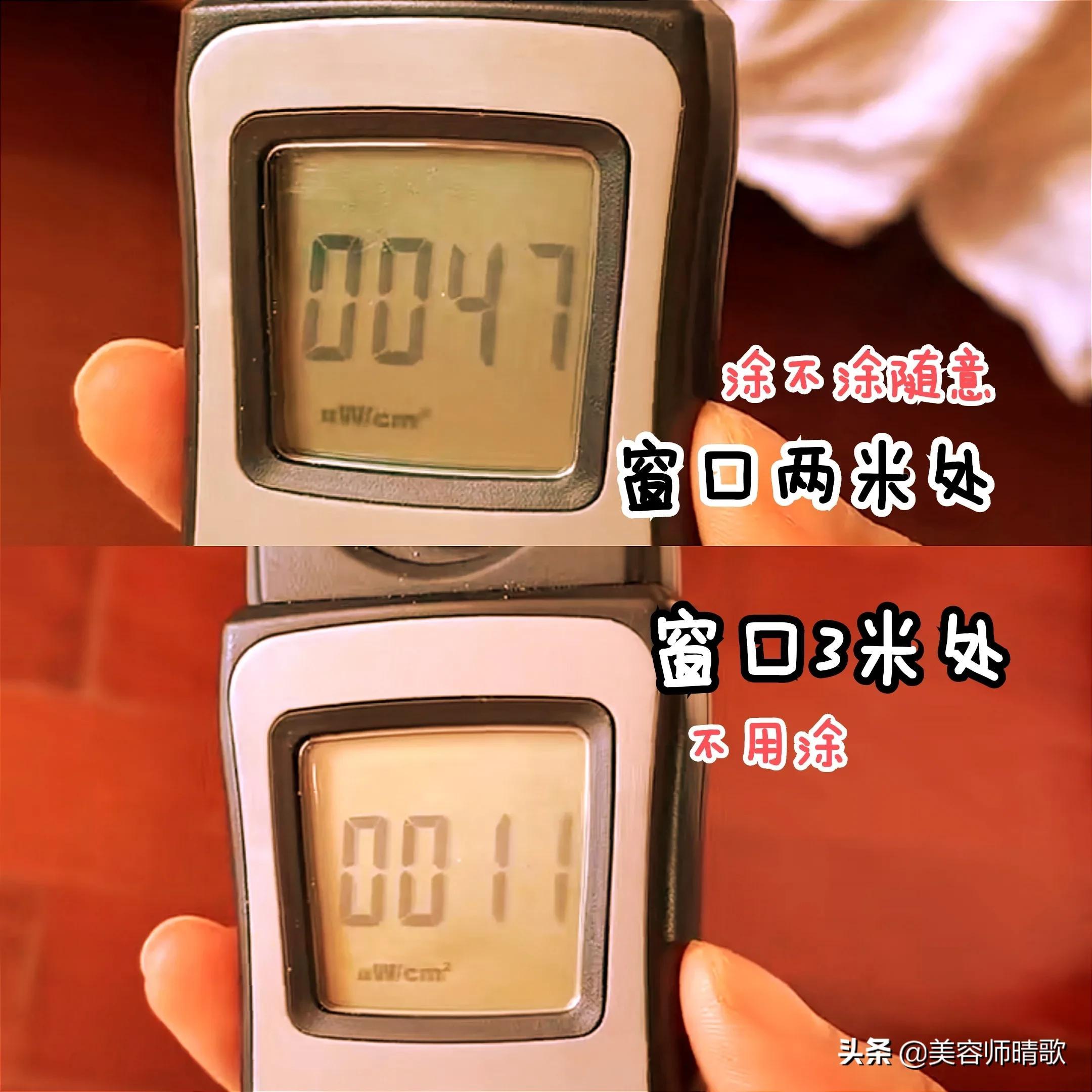 智商稅二、室內(nèi)室外都要用防曬霜?室內(nèi)室外,時(shí)時(shí)刻刻都要涂好防曬,這個(gè)可能是大家都踩過的雷!那么今天就帶大家看一組數(shù)據(jù):(日常情況下,紫外線測(cè)試儀得出數(shù)據(jù))