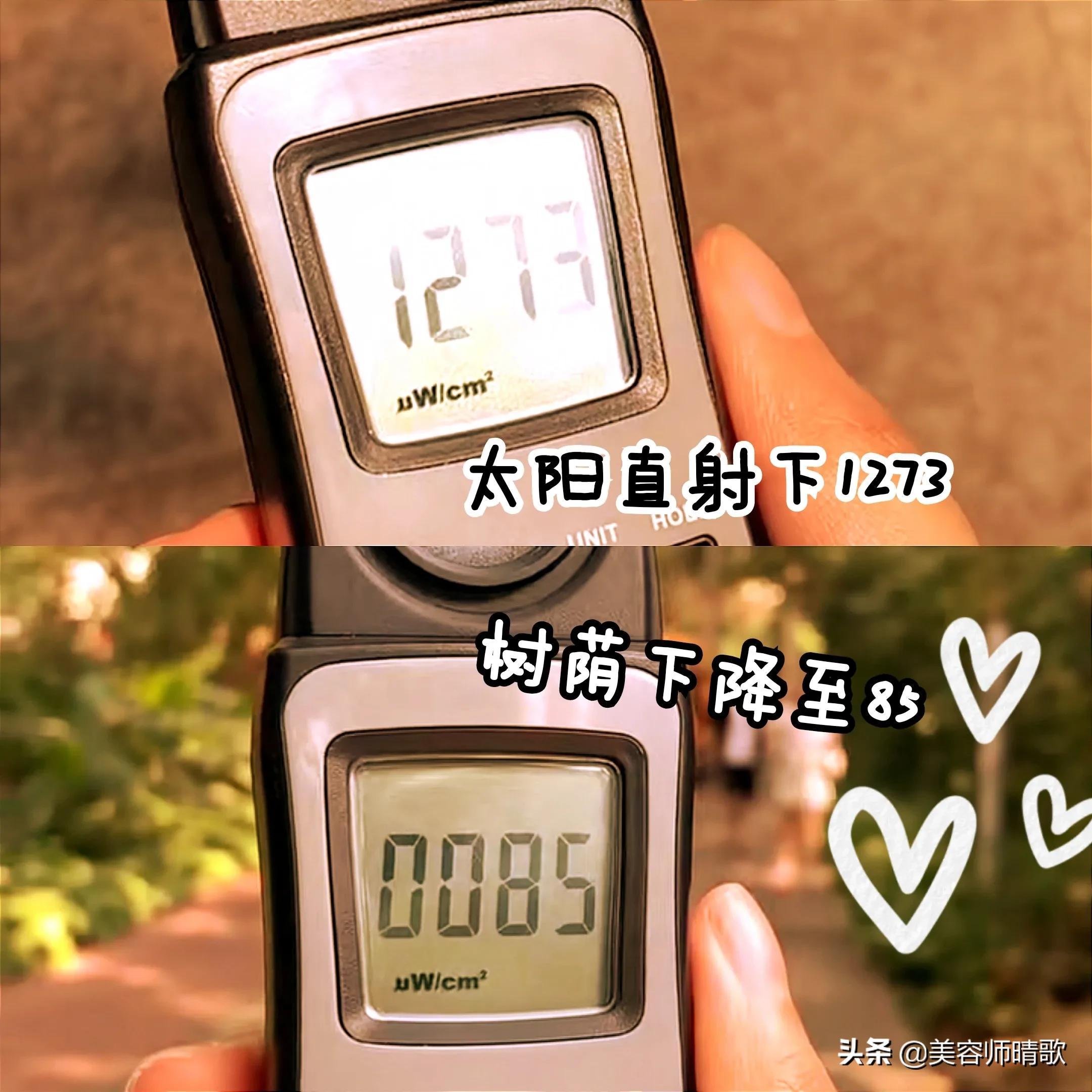 太陽直射下1273,往樹蔭底下降到了85,這個(gè)數(shù)據(jù)很讓人眼前一亮
