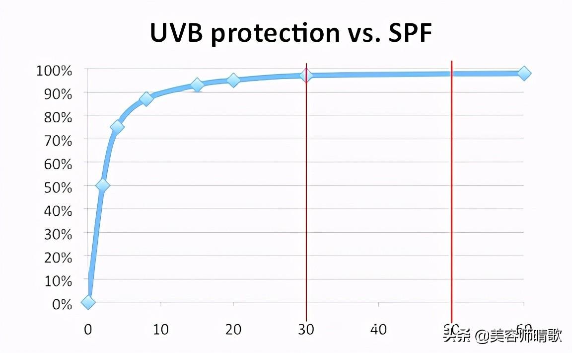 SPF15能阻擋93%的UVB,30能阻擋97%,50能阻擋幾乎98%,從數(shù)據(jù)上來看,SPF30和SPF50相差并不是很大,但是從30提升到50,化學(xué)成分添加劑的量卻很大。