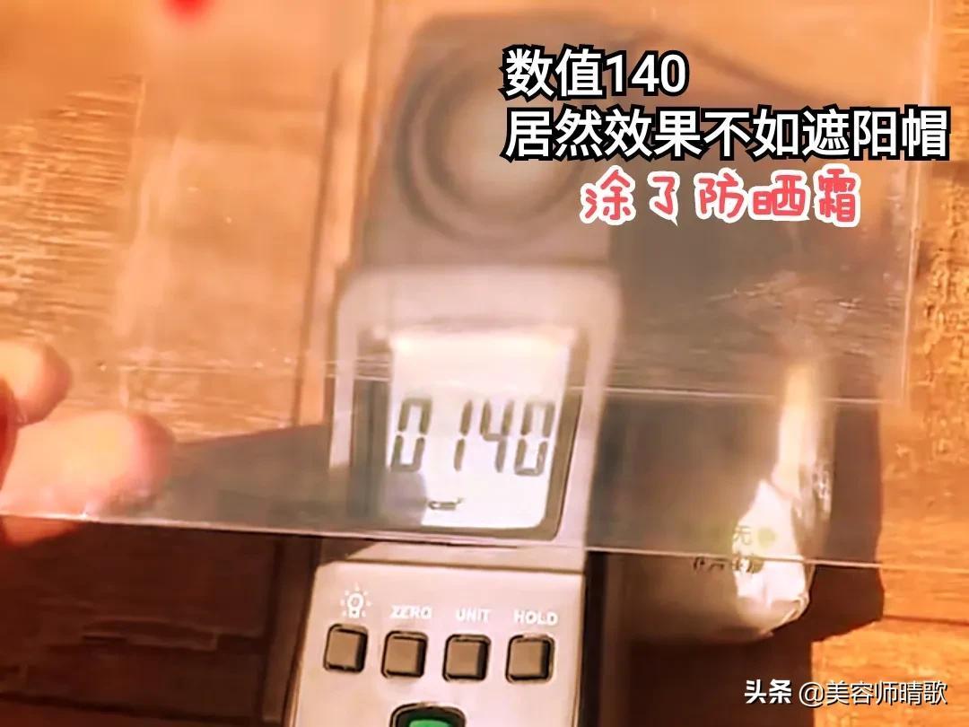 用涂了防曬霜的玻璃片測(cè)試,結(jié)果依舊有140的數(shù)值!相比上面的行防曬果差了一些呢!