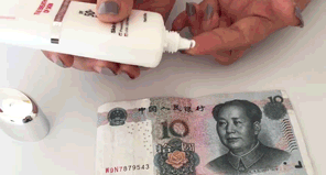 用約帕防曬霜涂在紙幣防偽處,清晰的防偽標識,以肉眼可見的速讀消失!amazing!