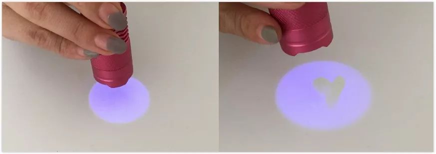 接著編編又用防曬霜涂抹了一個心型狀,紫外線居然不能穿透!