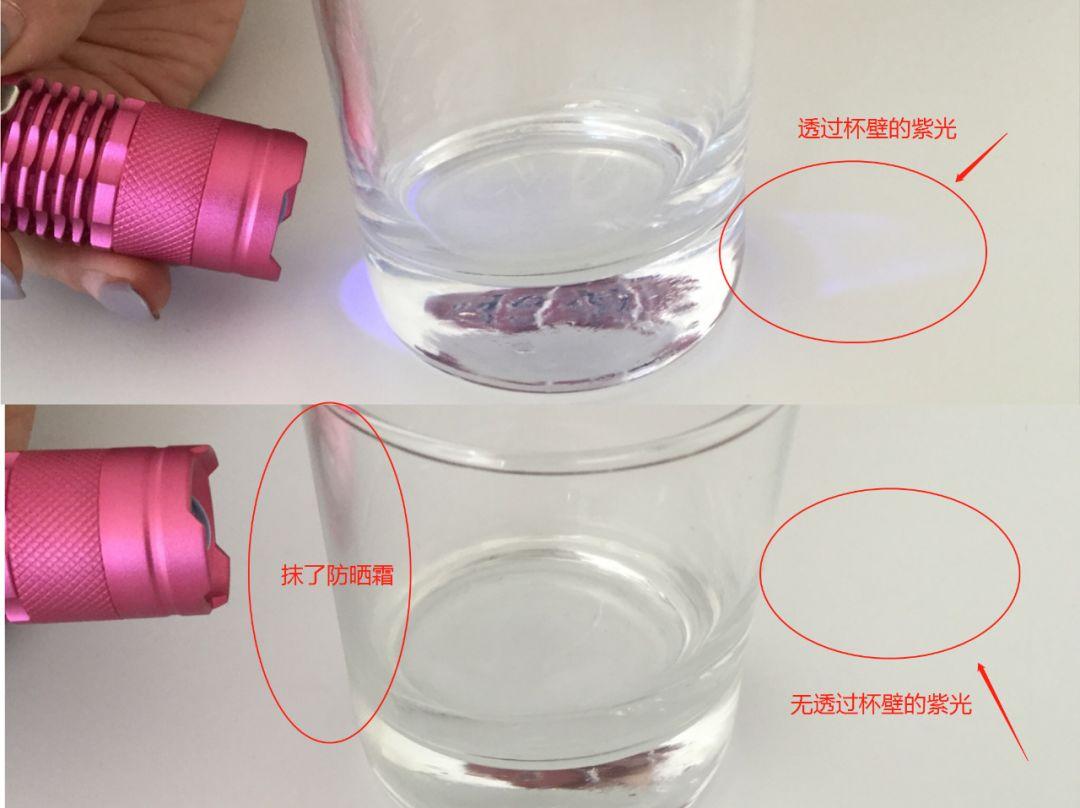 為了進一步考驗約帕防曬,編編拿出了絕殺,玻璃杯,在透明的杯壁涂上防曬霜,竟然一點紫光都沒有透過去!簡直??!