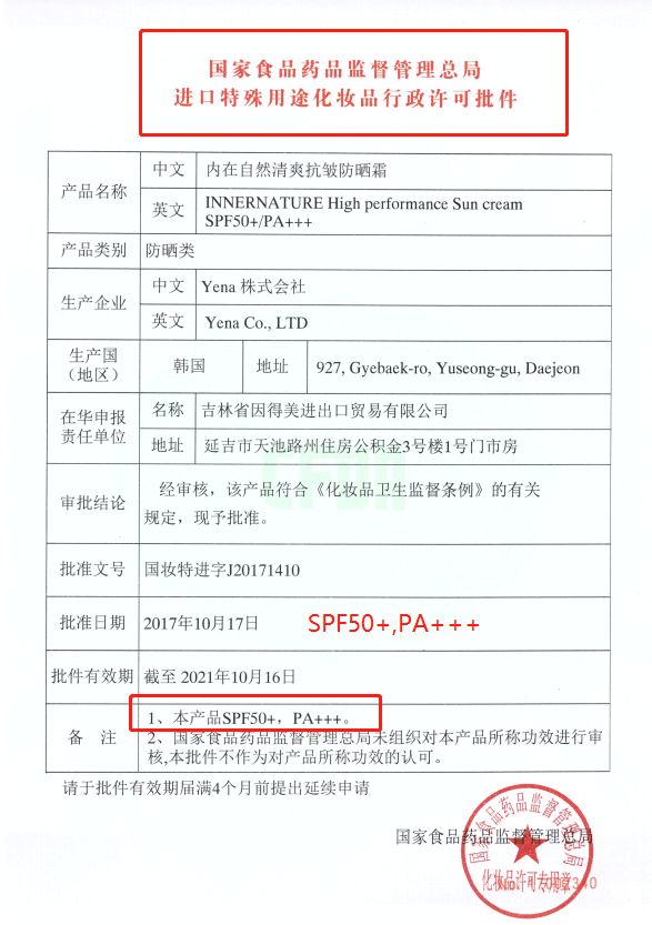 還找到了VN鉑金防曬霜藥監(jiān)局的許可證,3頁的成分表,除了滿滿的主要防曬成分,剩下的幾乎全是護(hù)膚養(yǎng)膚的成分。