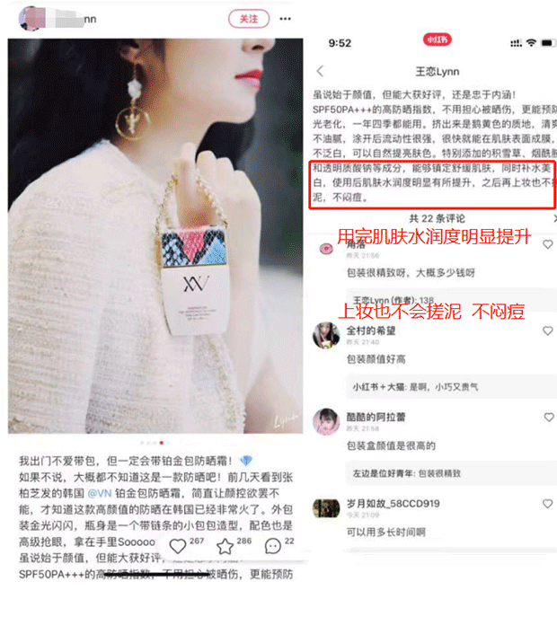 再看看小紅書上小姐姐們發(fā)的po文 ,都說它“輕薄水潤”“不油膩”,“上臉不搓泥”,“美白防曬兩不誤”,“皮膚白到發(fā)光”。