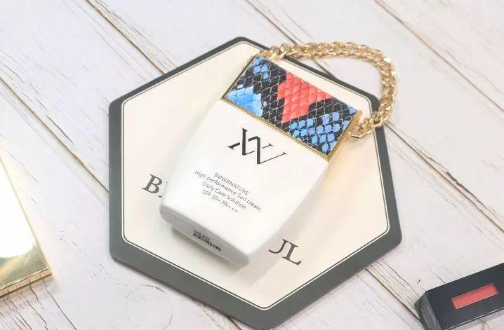 女神說的沒錯,它的顏值實在太高了,做的好像一個包包,從配色到整體設(shè)計又時尚又高級,柔柔軟軟棉花糖般的純白和不規(guī)寬何品粒食邊覺面體則的亮色紋路再加上質(zhì)感十足的鎏金色細(xì)鏈條,要不是女神指教,怎么也猜不出是一款來自韓國新的防曬霜。