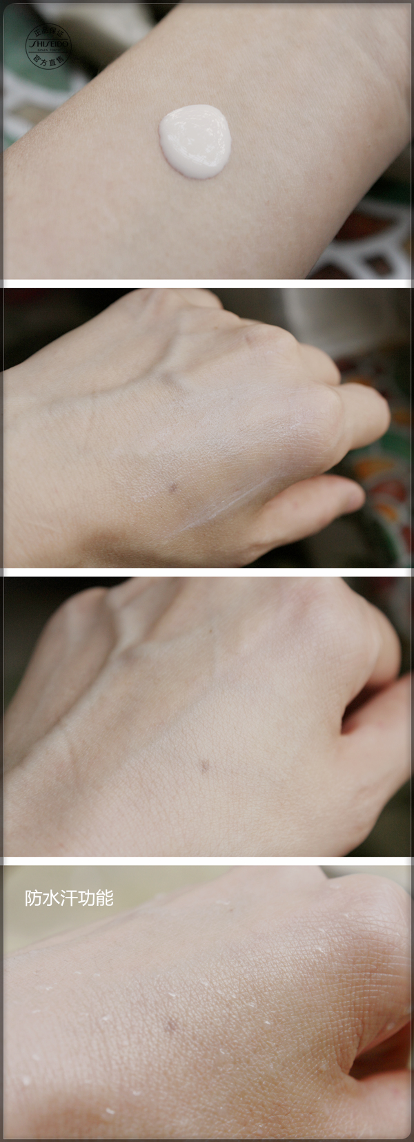 試用心得優(yōu)點:資生堂藍(lán)胖子不挑膚質(zhì),適用性廣,質(zhì)地輕薄,不油膩不緊繃,不泛白不悶痘,使用感舒適溫和,防曬和抗水能力一級強(qiáng)悍,是出色的戶外防曬。如果滿分是100分,我要給你101分,那多出來的一分就是讓你驕傲的,強(qiáng)烈推薦!