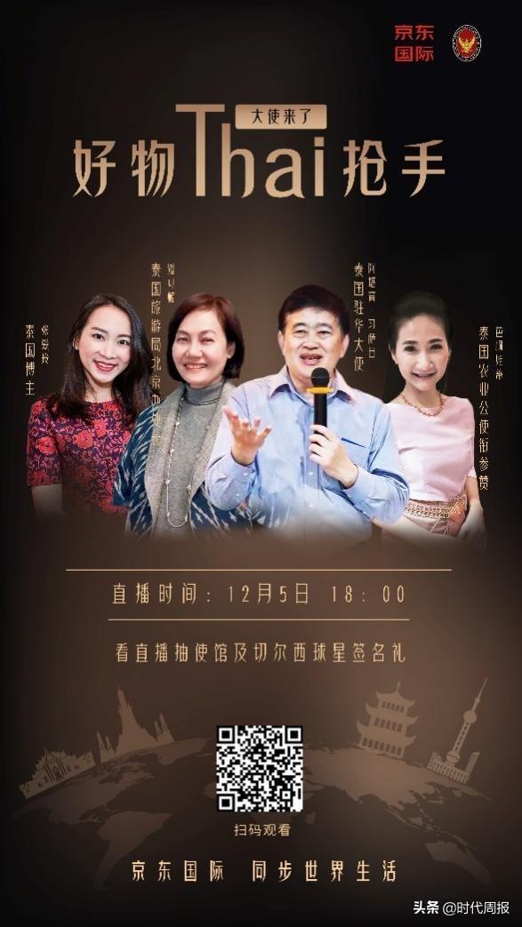 直播當(dāng)天,恰逢泰國(guó)國(guó)慶日,泰國(guó)駐華大使阿塔育·習(xí)薩目在直播間為消費(fèi)者們帶來(lái)泰國(guó)當(dāng)?shù)剡M(jìn)口好物的同時(shí),也將泰國(guó)文化傳播給國(guó)內(nèi)消費(fèi)者,不但帶領(lǐng)觀眾云逛泰國(guó)國(guó)慶日現(xiàn)場(chǎng)京東國(guó)際線(xiàn)下展位,并講解京東國(guó)際的泰國(guó)商品,更送出大使紀(jì)念品簽名包、切爾西俱樂(lè)部球服等精美禮品。