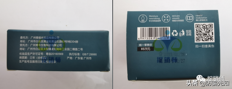 而當(dāng)捉銷(xiāo)師使用相關(guān)軟件掃描雅因璐富勒烯水潤(rùn)修護(hù)精華液背面的條形碼后得出的結(jié)果與消費(fèi)者提供的實(shí)物截然不同。