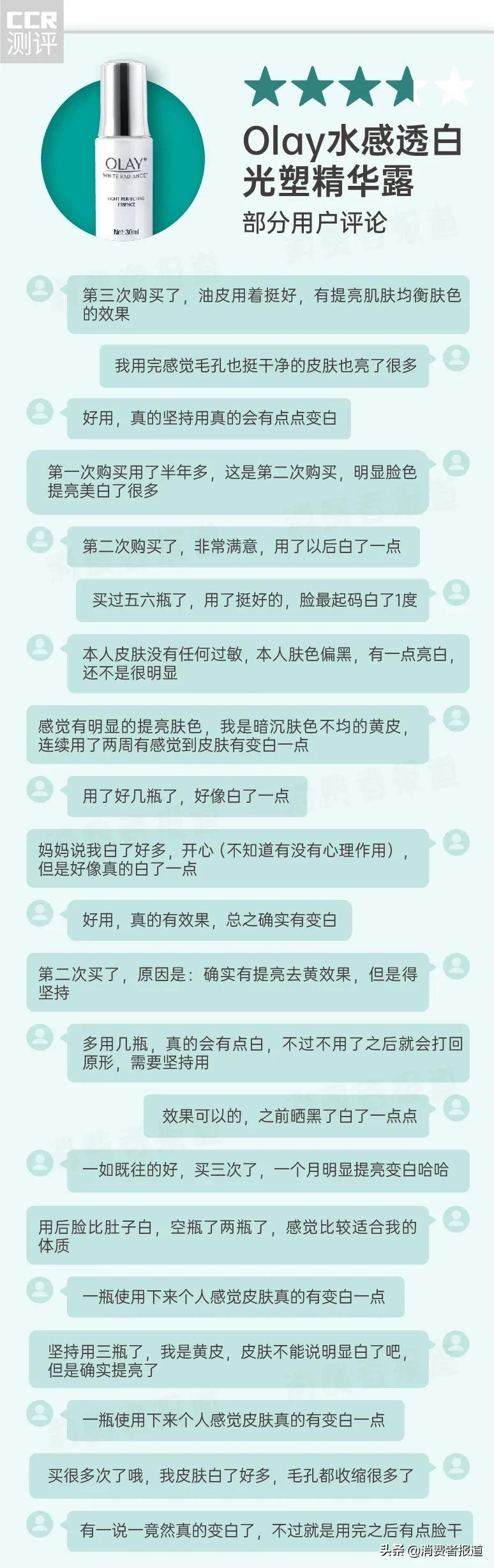 Olay“光感小白瓶”:“確實(shí)有變白”,部分人用后會(huì)“長(zhǎng)毛”與前兩款主打的VC不同,寶潔的風(fēng)格是添加煙酰胺。包括經(jīng)典的Olay光感小白瓶和SK-II小燈泡。