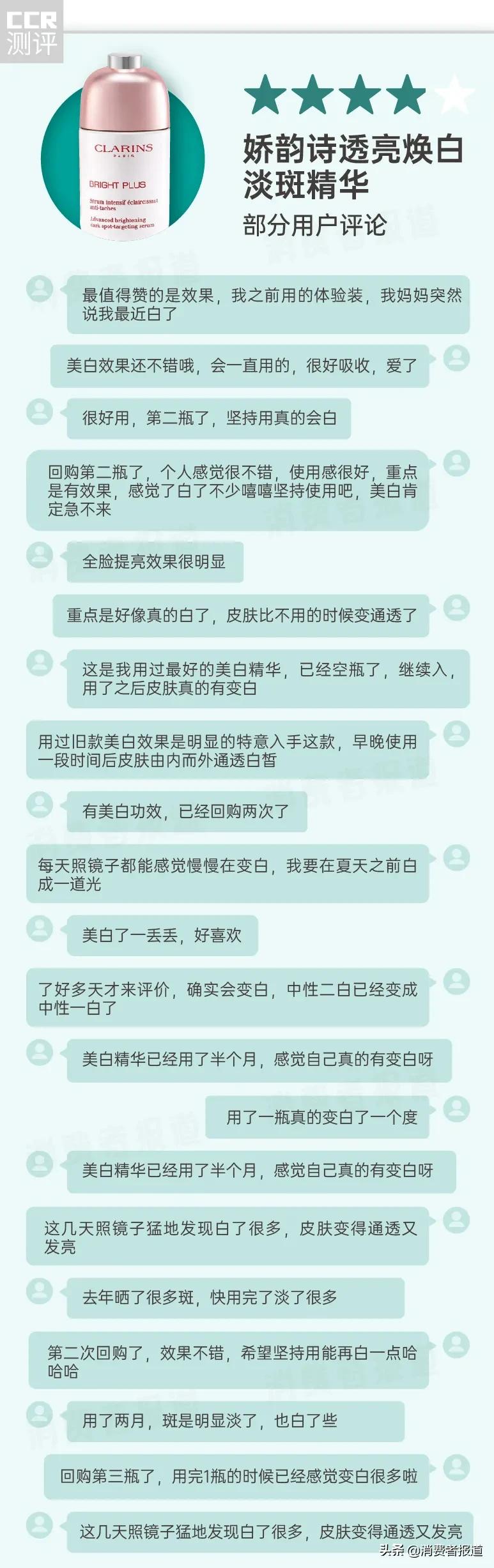 在電商評(píng)論中,其美白果也得到了反映,類似“通透白皙”“白了一個(gè)度”的評(píng)價(jià)不少。