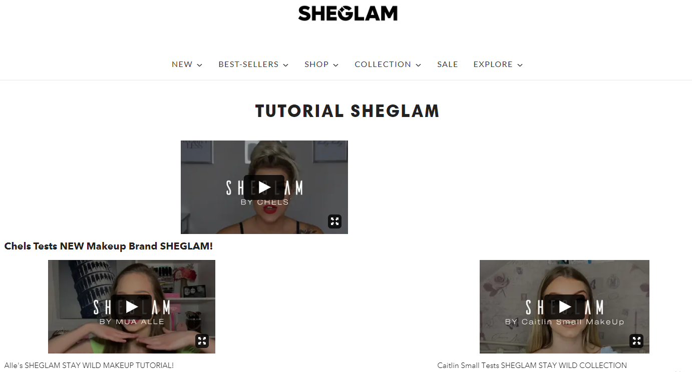 此外,SHEGLAM在獨立站設置了一個化妝教程板塊,用戶可以看到完整的美妝教程視頻,有促進了用戶的購買轉化。