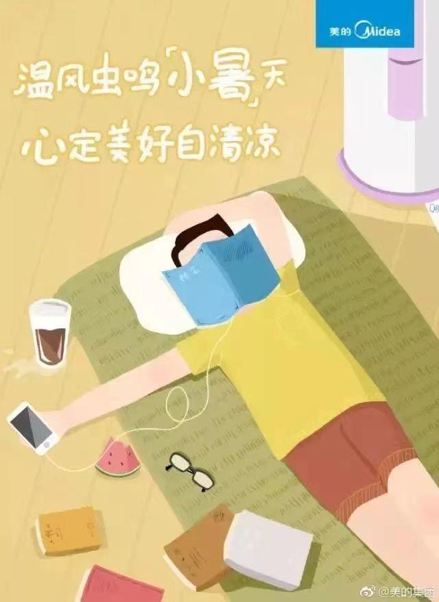 美的在小暑時的品牌營銷在于構(gòu)建一個愜意的午后:躺在涼席上看書、聽音樂、吃西瓜和飲料的同時,吹著空調(diào)。營銷的重點就在于吹空調(diào),空調(diào)是美的品牌的主要產(chǎn)品之一,打開空調(diào),就可以過一個涼爽的夏日。