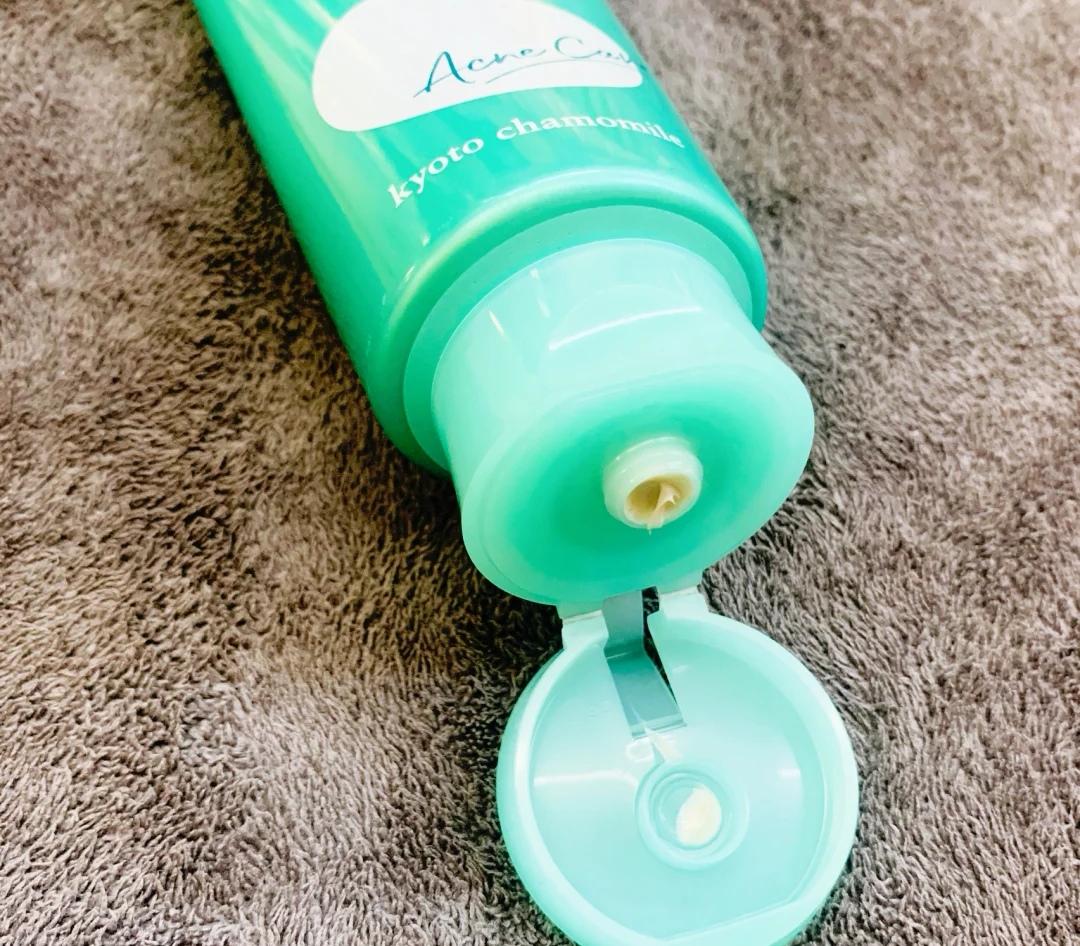 它是綠色的軟裝包裝,膏體是淡淡的綠色,泡沫綿密,里面含有的水楊酸精華可以有的抑痘祛痘,京都洋甘菊精華幫助舒緩肌膚的泛紅不適。