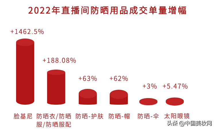 以傳統(tǒng)防曬霜為代表的化學防曬已不能滿足消費者精致主義的訴求,面對紫外線的無死角攻擊,消費者毫不猶豫地選擇包裹式的“物理防曬大法”進行抵御。報告顯示,2022年1-4月,防曬用品在直播間的成交額增速達40%,其中防曬衣成交增幅達157.11%,防曬護膚成交增速達62.17%。