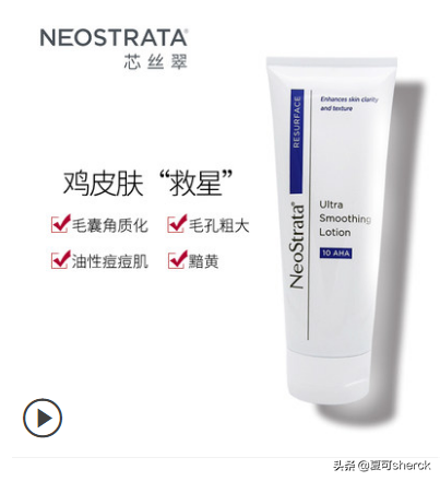 第二個猛料型是neostrata 芯絲翠。這個痘痘皮、雞皮應該挺熟悉的醫(yī)美小眾了。他也是號稱果酸世家的。