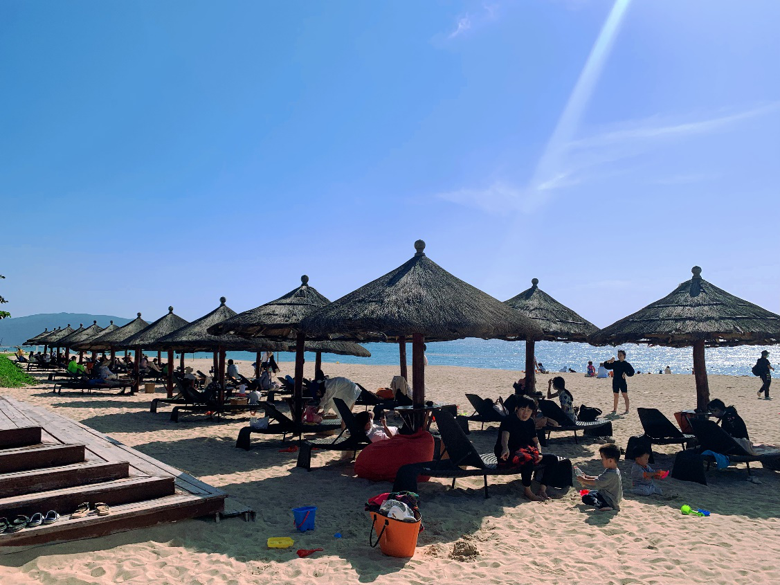 三亞的沙灘上,躺滿了來自全國各地的游客。(攝影:李賢)