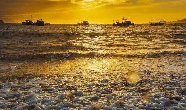 三兩兩勞作的漁民和一群群貼著沙灘飛過(guò)的鷺鳥