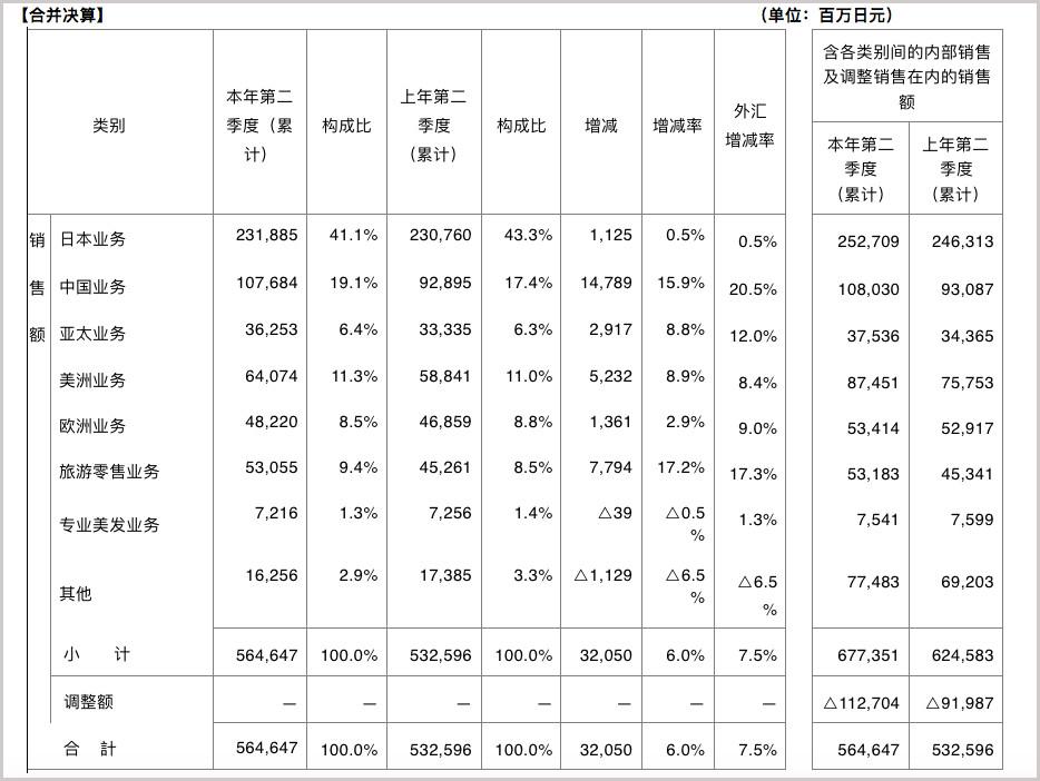 在資生堂集團(tuán)今年8月公布的2019上半年財(cái)報(bào)中,該集團(tuán)第二季度累計(jì)銷售額達(dá)5646億日元(約合人民幣375億元),同比增長(zhǎng)7.3%。其中中國市場(chǎng)再次引領(lǐng),上半年合計(jì)銷售1077億日元(約合人民幣72億元),并以15.9%的增幅同比其他地區(qū)。