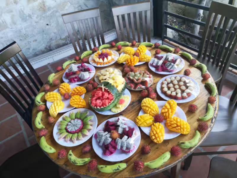 水果餐(包括榴蓮菠蘿蜜西瓜熱帶香蕉芒果火龍果等等有一種全身是刺的里面像龍眼肉的不知道叫啥)