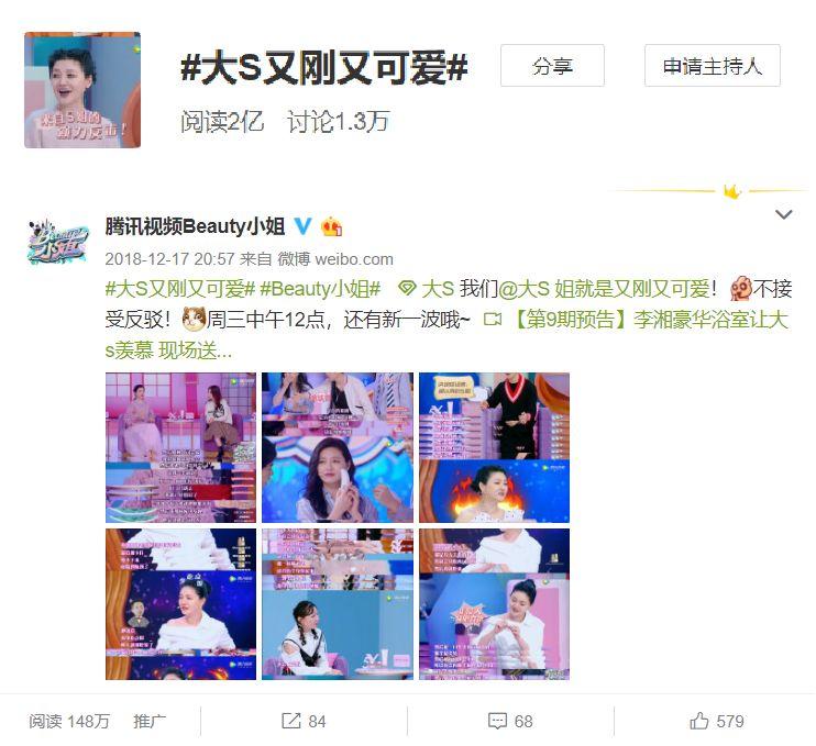 作為有“2018強(qiáng)種草機(jī)”稱號(hào)的美容美妝類綜藝,《Beauty小姐》第一季以大S為主軸,集合了沈夢(mèng)辰、張嘉倪、佘詩(shī)曼、小S、梁潔、阿嬌等一眾明星強(qiáng)勢(shì)“種草”。截至1月初,節(jié)目累積播放量破4.5億,微博平臺(tái)總話題閱讀量破8億,在貓眼、劇星、Vlinkage等多份榜單中多次位列,并由此延伸出了#大S又剛又可愛#、#明星也踩雷#、#雙十二奇浴記#、#八王妃浴室告白流觴#等多個(gè)熱門話題?!癇eauty小姐同款”不僅刷屏小紅書,更在淘寶、京東等電商平臺(tái)獲得數(shù)百商家推薦,并帶動(dòng)了各式各樣產(chǎn)品的銷售額增長(zhǎng)。