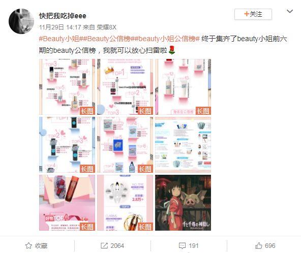 此外,在小紅書端,榜單公示及后續(xù)解讀稿件擁有著2000+的平均互動(dòng)量,面膜榜單更是在關(guān)鍵詞下霸榜首頁(yè)一周有余;微博端還出現(xiàn)了大量粉絲自發(fā)擔(dān)任“課代表”,整理榜單梳理品牌。如此操作不僅僅是強(qiáng)化了榜單的圈層擴(kuò)散能力,也是為節(jié)目本身的口碑和用戶黏性打下了良好的基礎(chǔ)。