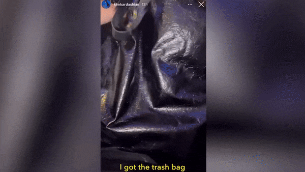 作為回饋,她當(dāng)天收到了這款垃圾袋作為禮物。開心的她當(dāng)天就在 Instagram 發(fā)布快拍,帶著欣賞眼光打開巴黎世家灰色布袋子,里面裝了黑色垃圾袋,以及纏過她全身的同款黃色膠帶。