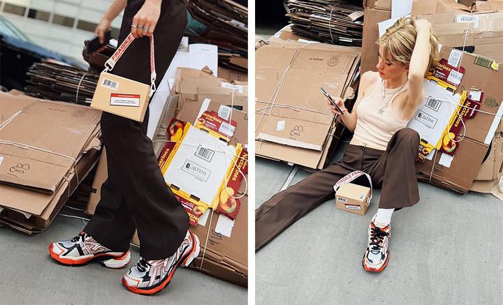 03. 賣得快,升值更快的快遞紙箱來(lái)自紐約的設(shè)計(jì)師兼藝術(shù)家 Nik Bentel 名氣雖遠(yuǎn)遠(yuǎn)比不上巴黎世家和 LV,但做起產(chǎn)品來(lái),卻回回做出爆款??爝f箱包包(The Shipping Box Bag)是新力作,7 月 21 日上架 1 分鐘內(nèi)立馬被搶光。