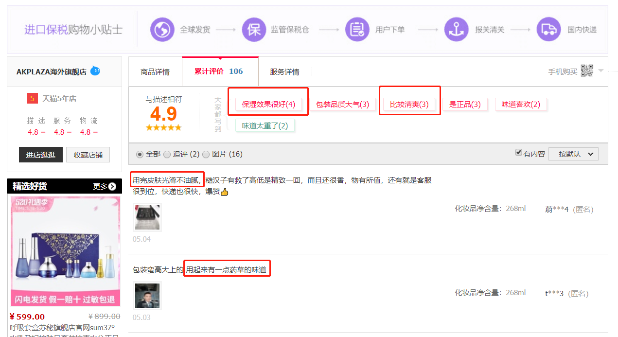 ③銷售渠道:是網(wǎng)絡(luò)銷售還是實(shí)體店銷售?是商場(chǎng)專柜還是藥妝店鋪?可有客服和美容顧問?