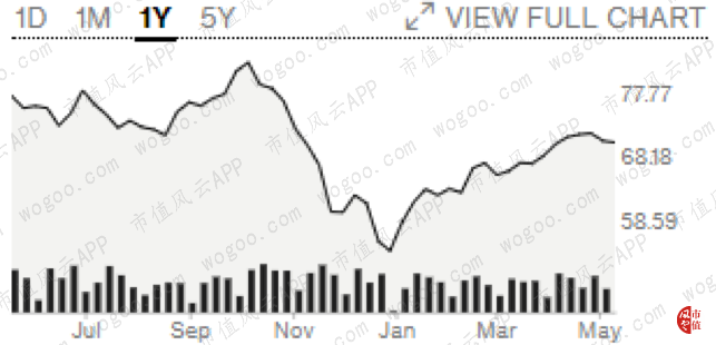 (布倫特原油期貨1年內(nèi)價(jià)格走勢(shì)圖 $/bbl,Bloomberg)