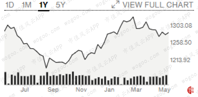 (芝商所黃金期貨1年內(nèi)走勢(shì)圖 $/ozt,Bloomberg)
