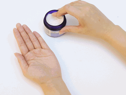 先挖適量面霜在掌心,然后雙手合攏捂熱,把面霜搓開后輕輕按壓在臉上就可以了。