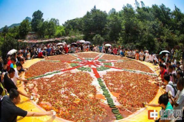 7月14日,新密某景區(qū)門前,擺出一桌“蝦尾宴”,吸引了眾多游客圍觀與嘗鮮,紛紛為這樣的美味而點(diǎn)贊。從現(xiàn)場(chǎng)可以看到,近千斤炒制好的蝦尾、黃瓜和番茄構(gòu)成了一個(gè)巨型的花瓣,放在9米寬的大桌子上,造型十分奇特。眾所周知,新密蝦尾屬于當(dāng)?shù)靥厣朗?,備受游客歡迎。據(jù)現(xiàn)場(chǎng)工作人員介紹,這次共準(zhǔn)備了1000斤蝦尾,兩天內(nèi)有近萬(wàn)名游客品嘗。