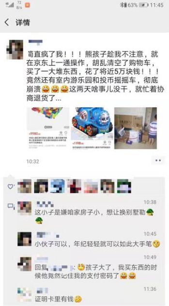 7月11日晚,安陽(yáng)內(nèi)黃的郭先生6歲的孩子,偷記媽媽支付密碼,趁其不注意,竟清空了媽媽的購(gòu)物車,全部給付款了,合計(jì)4.3萬(wàn)多元,其中包括很多游樂(lè)園設(shè)備,儼然一個(gè)大的“游樂(lè)場(chǎng)?!?郭先生告訴記者,東西到家后也不敢拆包裝。此后,他趕緊聯(lián)系上了京東客服,協(xié)商能否退貨,沒(méi)想到還真給退了。其他的還在路上的、以及第三方商家聯(lián)系確認(rèn)訂單的,都緊急溝通沒(méi)讓送貨。