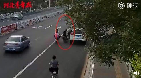 ⊙6歲女孩突然闖入車流 輔警飛奔上前將其救下