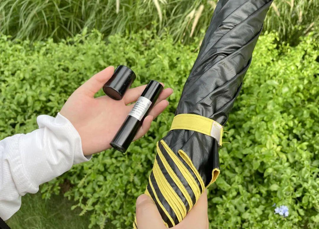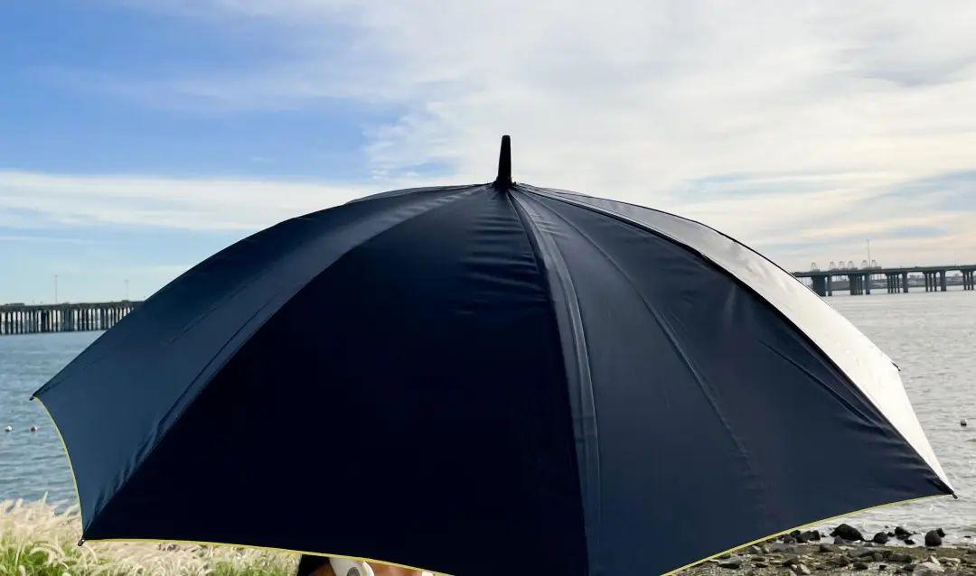 表面上看與常規(guī)的遮陽傘并無區(qū)別,傘面有遮陽涂層。注意區(qū)分雨傘和遮陽傘的區(qū)別,雖然我們平時都統(tǒng)稱為「帶雨傘了么?」,但遮陽傘在面料上會更厚,也有黑膠涂層,在太陽直射環(huán)境下,熱量不穿透傘面。