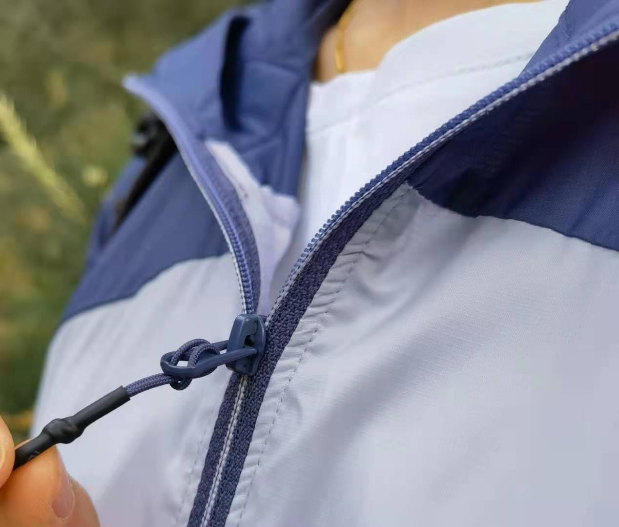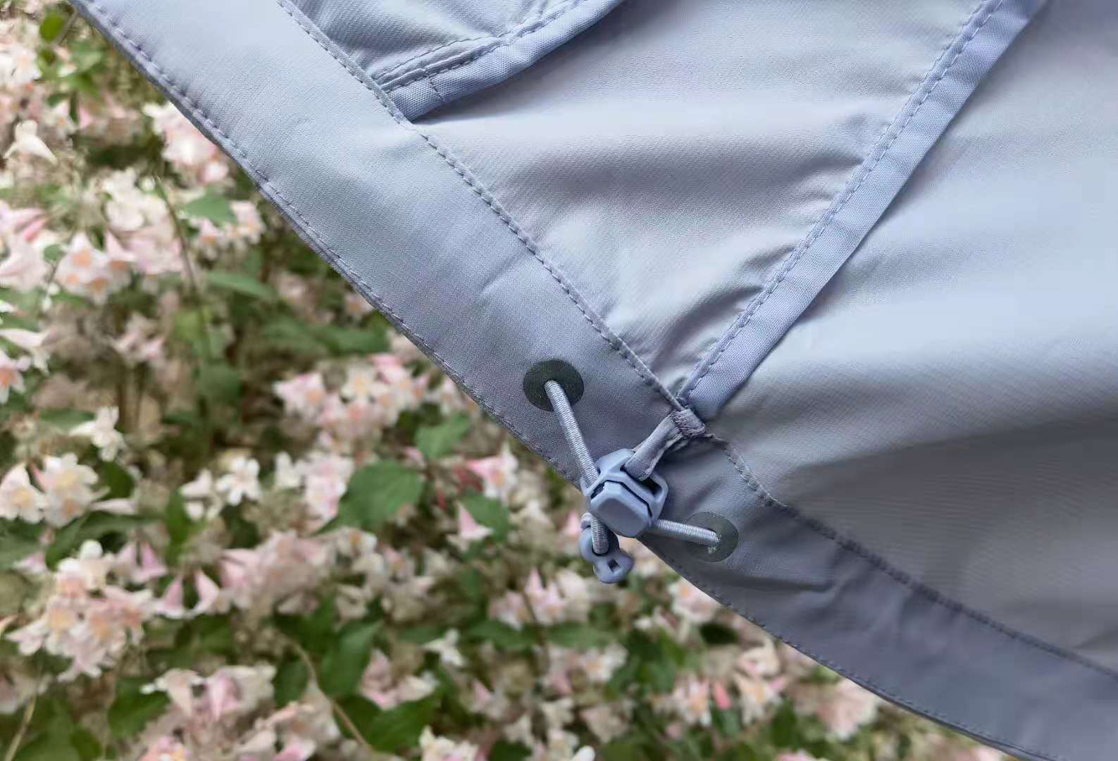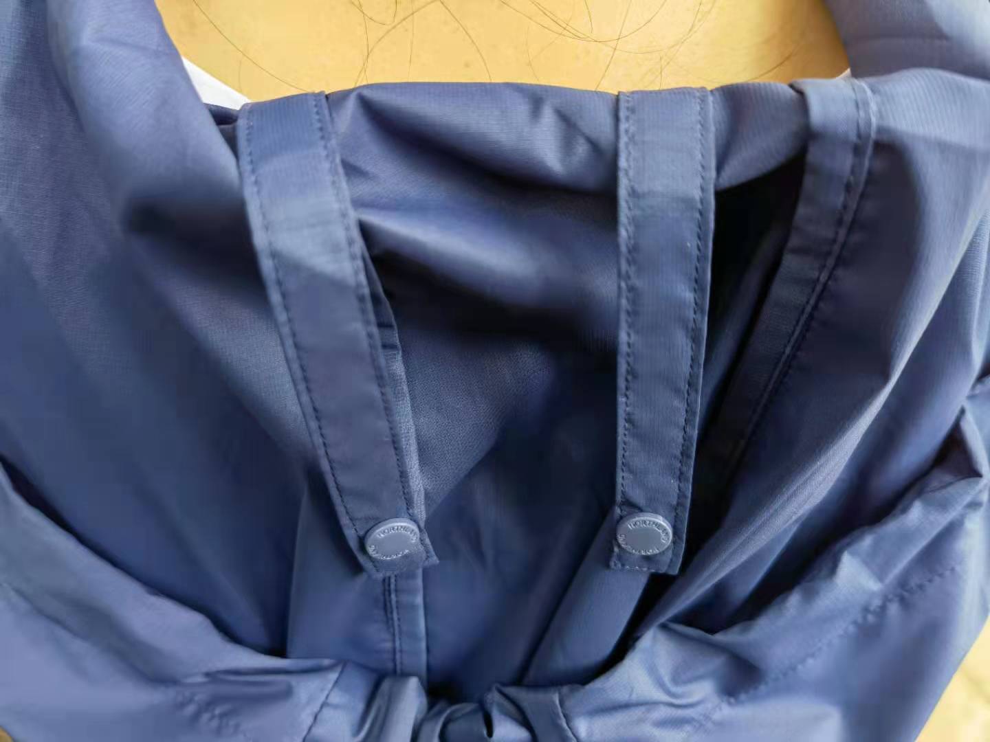 在皮膚風(fēng)衣領(lǐng)子的位置暗藏玄機(jī),設(shè)有兩根扁繩,開始還以為是用來(lái)懸掛晾曬的,翻過(guò)帽子看背面才發(fā)現(xiàn)原來(lái)是用來(lái)收納的,原諒小編的智商不在線。。。這種巧妙的設(shè)計(jì)很新穎,大家千萬(wàn)不要遺漏這個(gè)玄機(jī)哈。