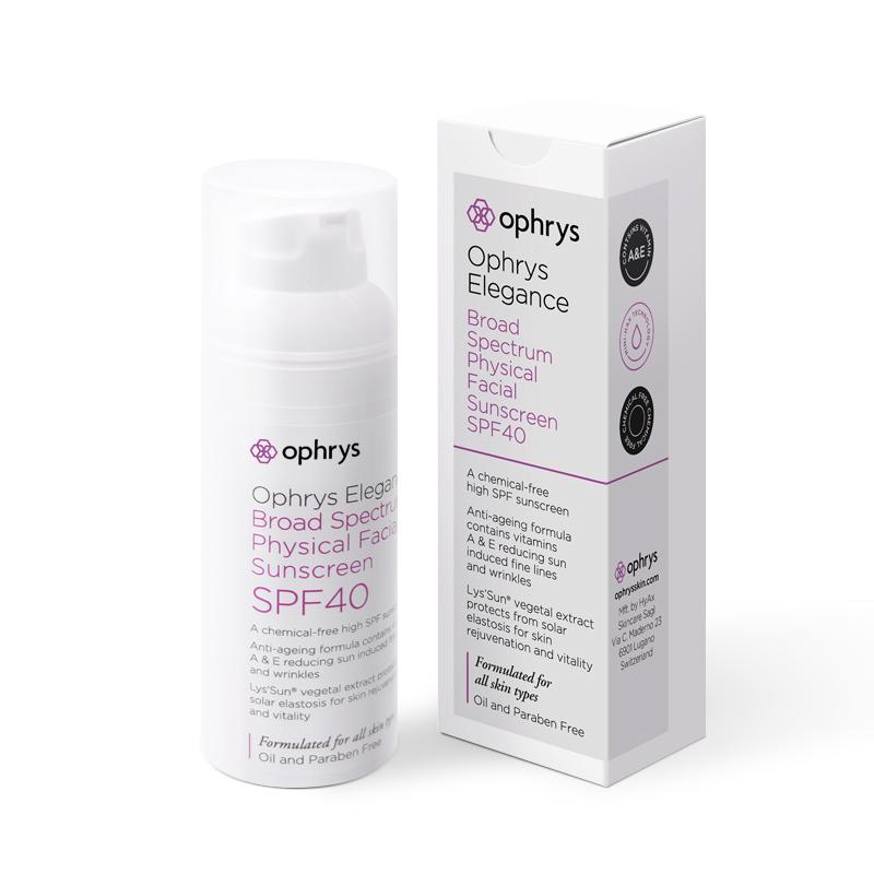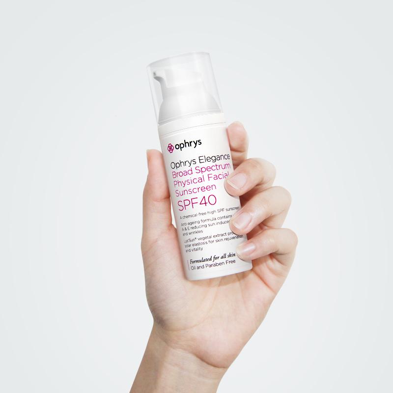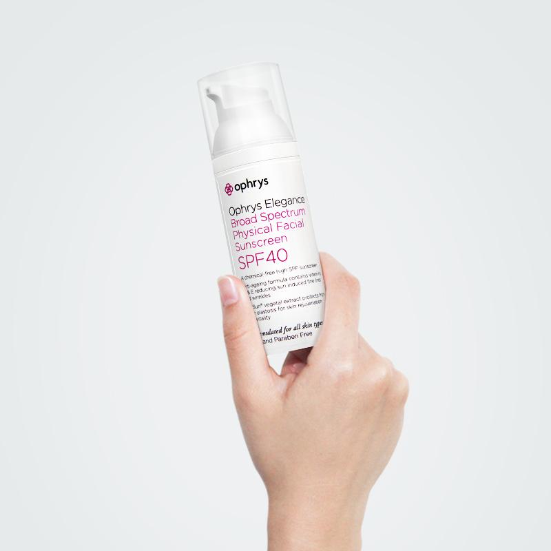Ophry抗皺防曬霜(broad spectrum physical facial sunscreen)是一款防曬抗皺雙重功的物理防曬產(chǎn)品,SPF值為40,足以應(yīng)付日常防曬需要。