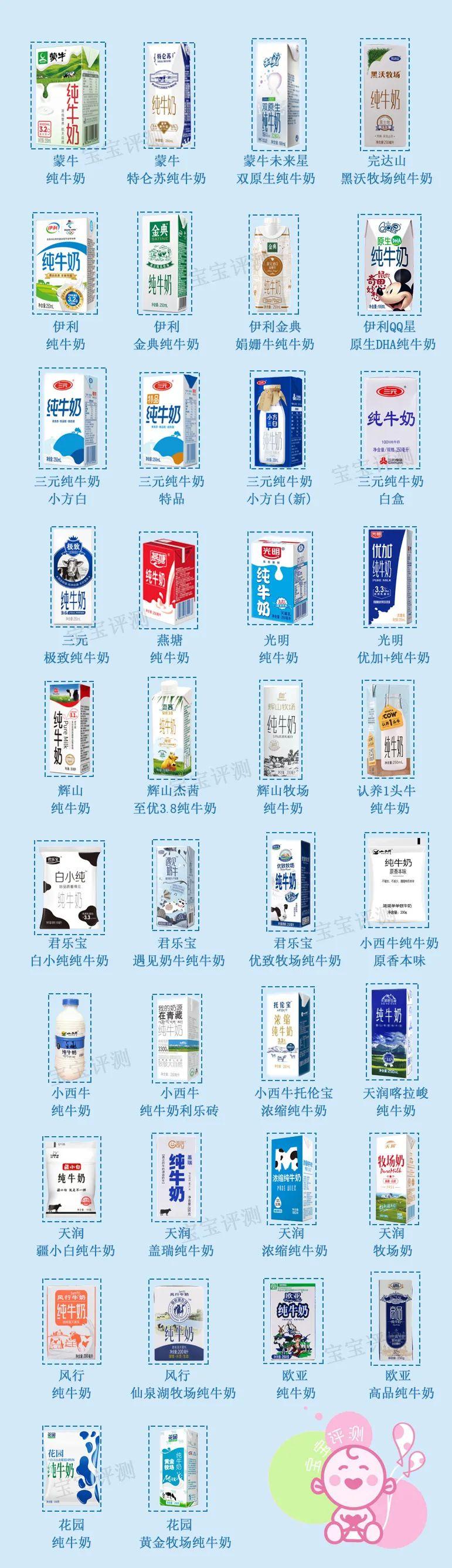 評(píng)測(cè)說明本期評(píng)測(cè),共選取了38款國內(nèi)比較暢銷的純牛奶,包括了14個(gè)知名國產(chǎn)品牌:蒙牛、伊利、輝山、三元、光明、完達(dá)山、君樂寶、風(fēng)行、燕塘、天潤、小西牛、歐亞、花園、認(rèn)養(yǎng)1頭牛。