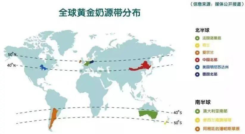 奶源地涵蓋了:黑龍江、內(nèi)蒙古、河北、上海、廣州、青海、新疆、云南等。其中,位于北緯40-50度的黑龍江、內(nèi)蒙古等地屬于“黃金奶源帶”。牧場(chǎng)環(huán)境、奶牛品種、奶牛養(yǎng)殖與管理、生乳控制等方面更優(yōu)質(zhì)。