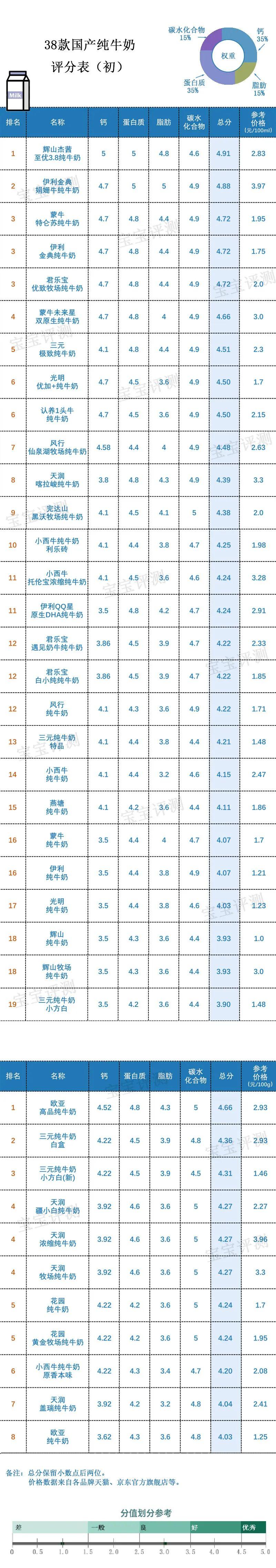 2、本期評(píng)測(cè)的38款純牛奶均為全脂純牛奶。