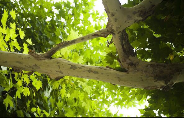 初見法國梧桐是1985年。初中畢業(yè)參加升學(xué)考試,各鄉(xiāng)鎮(zhèn)的學(xué)生都匯聚在縣城統(tǒng)一安排試場。這是我第一次去縣城,一路上的期待該是多么迫切!那時候路況差,七十五公里的路程走走停停,到縣城已經(jīng)是中午了。車在東風(fēng)路上停下來,透過車窗大家興奮地叫起來:“哦,縣城是這個樣子呀!”“只不過樓多一點(diǎn)兒,高一點(diǎn)兒!”“其實(shí)跟咱們鄉(xiāng)下也差不多!”……話音中既有驚喜也有失望和失落。我雖然比較瘦小,但也爭搶著趴到了窗戶根兒。平視過去,首先看到的就是窗外那一排排灰褐色乃至灰白色的樹干,粗壯的樹干,如果用我小小的胳膊去抱怕是攬不過來!抬頭望去,密密麻麻全是葉片!銀灰色的樹枝挑起一個個巴掌般的葉片,仿佛在擊掌歡迎我們的到來!在鄉(xiāng)下的十四五年中,常見的就是榆樹、白楊樹、刺槐等等,第一次看到這斑駁陸離、高大魁梧、遮天蔽日的樹木,不由得就想:“這或許就是城市與鄉(xiāng)下的區(qū)別吧?”第一次進(jìn)縣城的經(jīng)歷雖然早已成了云煙,但我卻記住了這引發(fā)我好奇心的樹。讓我同樣難忘的還有那次考試,也就是在那次考試中,我憑借優(yōu)異的成績考入了本市的一所師范學(xué)校,人生走向大致定型。一座城,一種樹,一個年輕女孩之間,竟有了千絲萬縷的聯(lián)系,至今想來總還難抑唏噓!